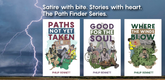 Philip Rennett is a writer of satirical fiction and creator of the Path Finder series - fast-paced and furiously funny novels that explore power, chaos, ambition, and the fragile hope that keeps humanity afloat.